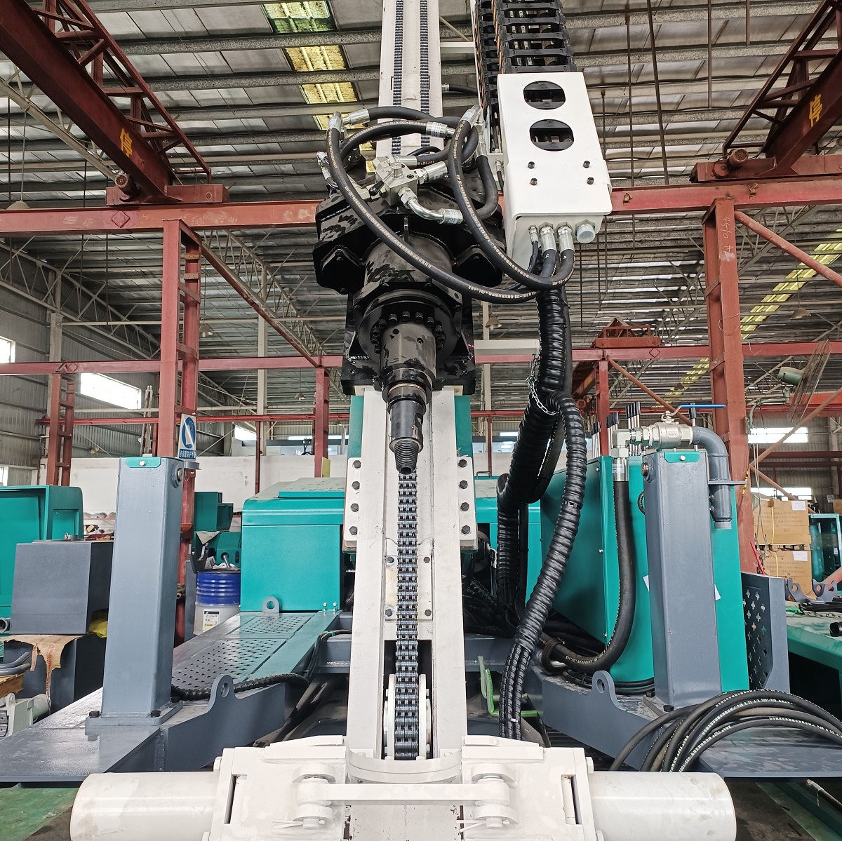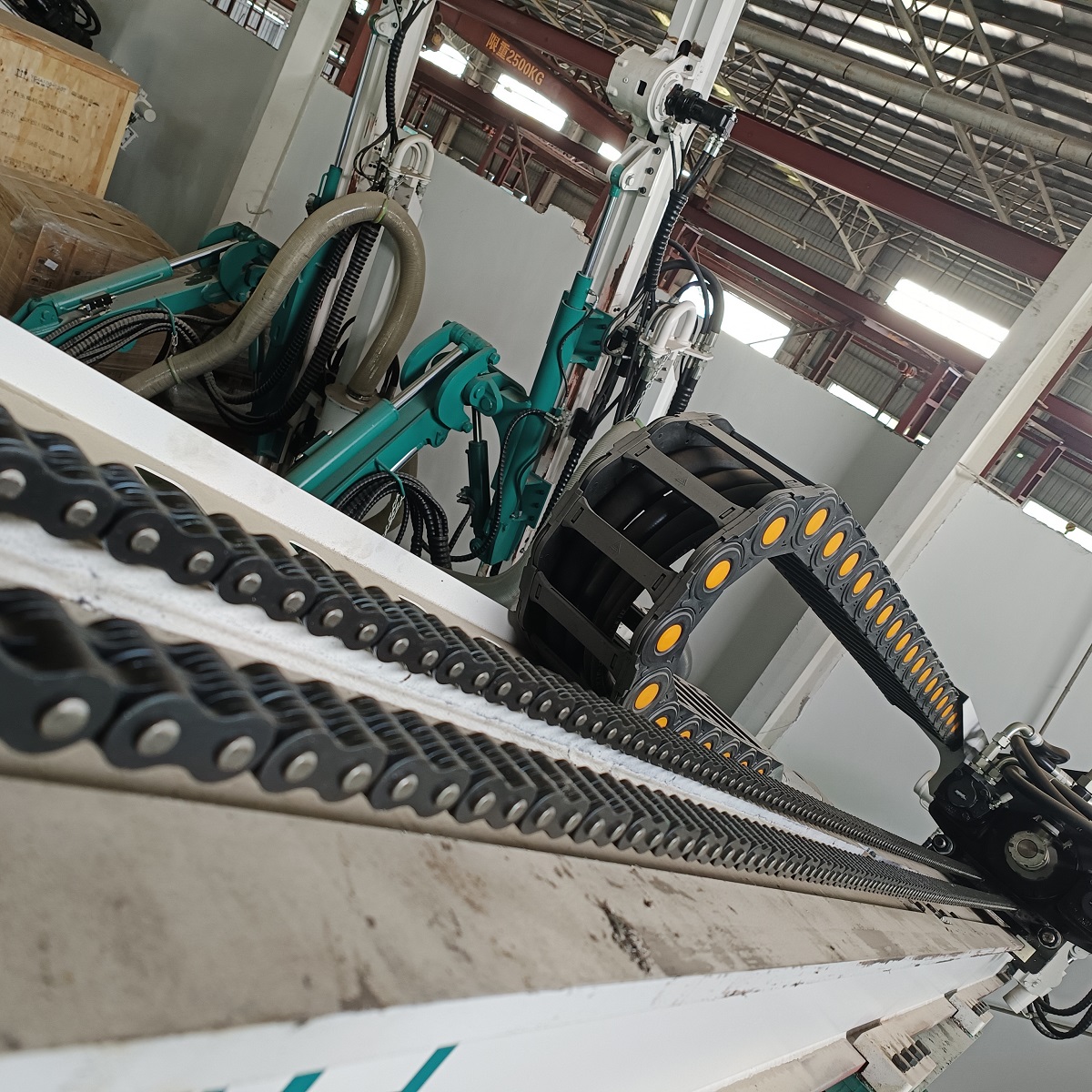 Con una relación de transmisión constante, la transmisión por cadena permite un control preciso del posicionamiento del brazo de perforación, lo que garantiza la verticalidad de la perforación, que es un requisito fundamental para el soporte de los pernos de roca.