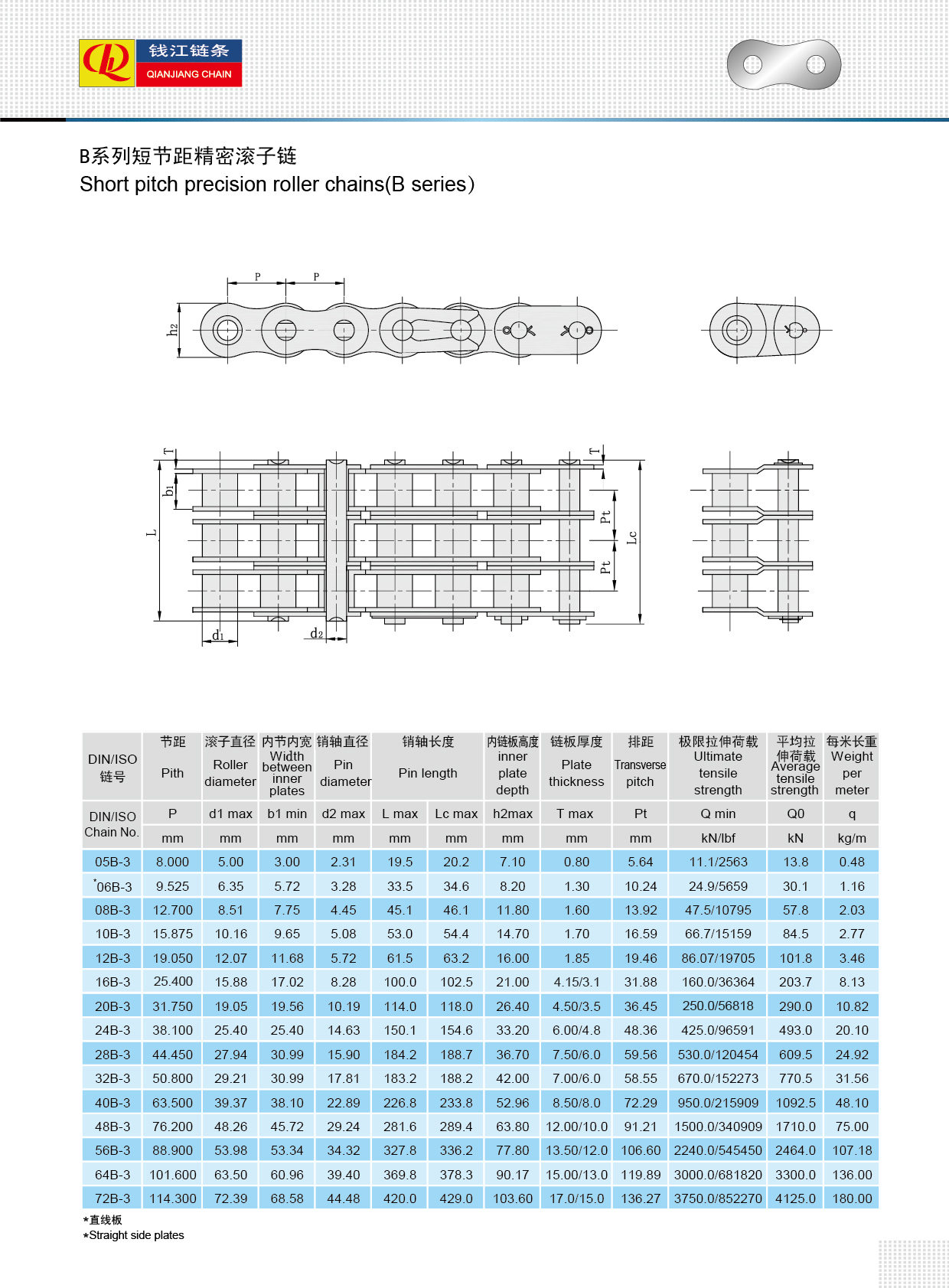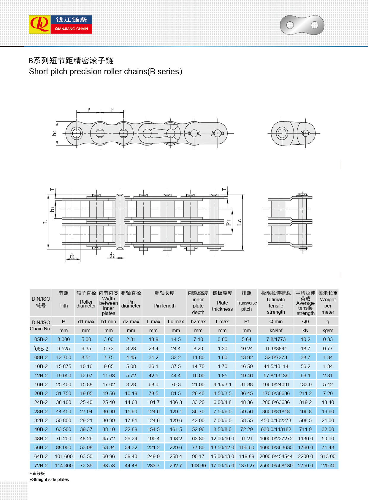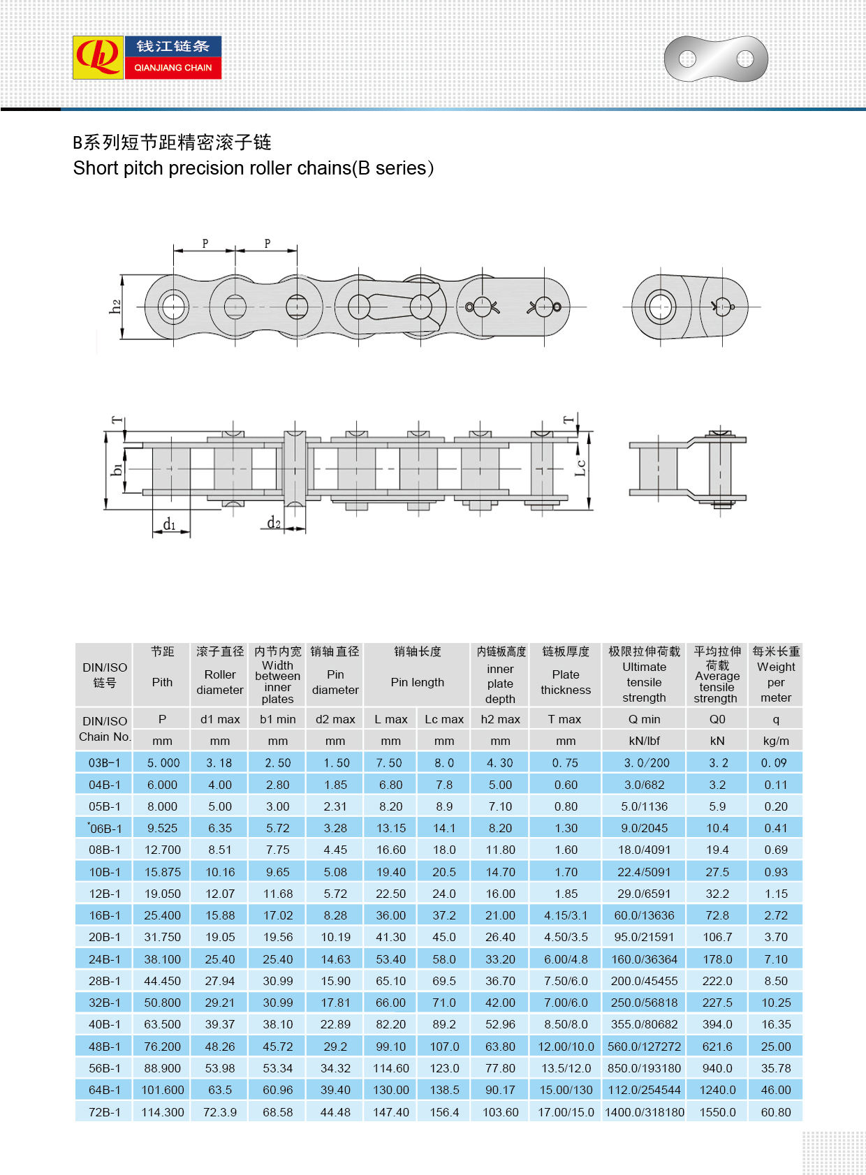 Cadenas de rodillos serie B