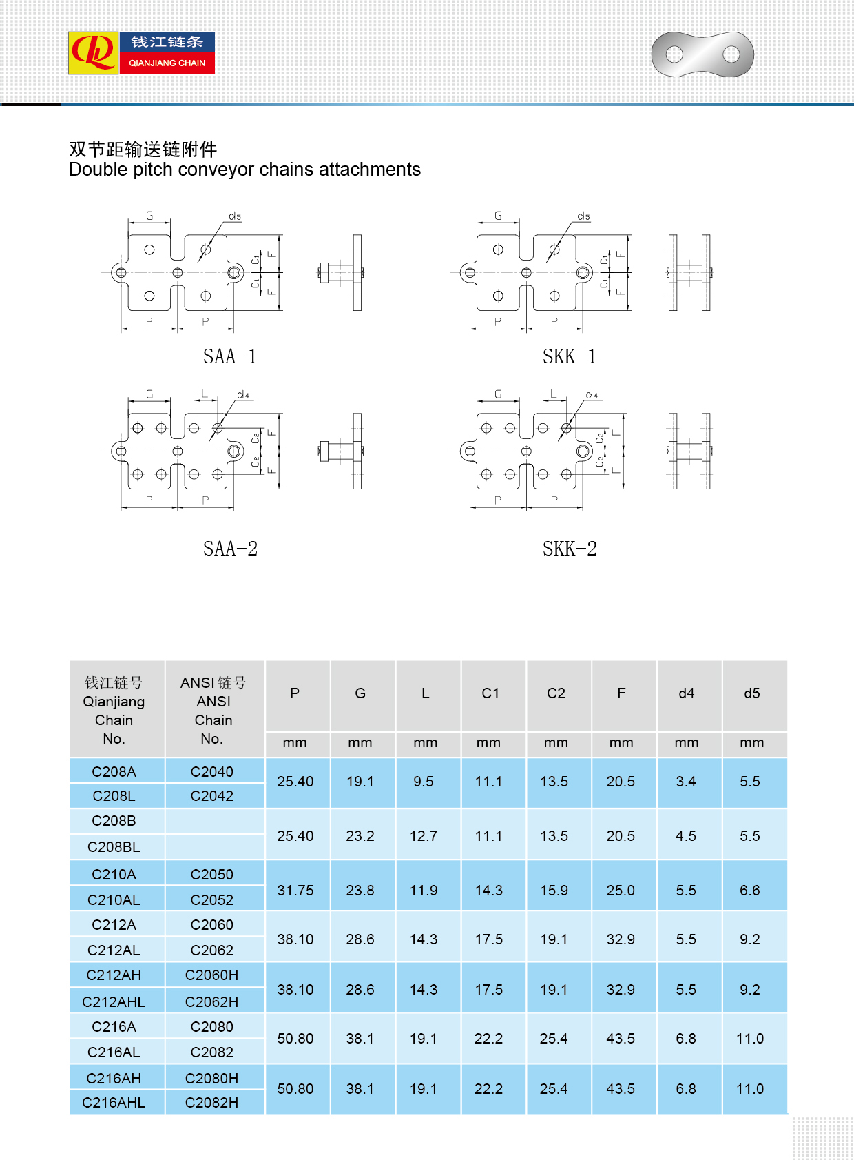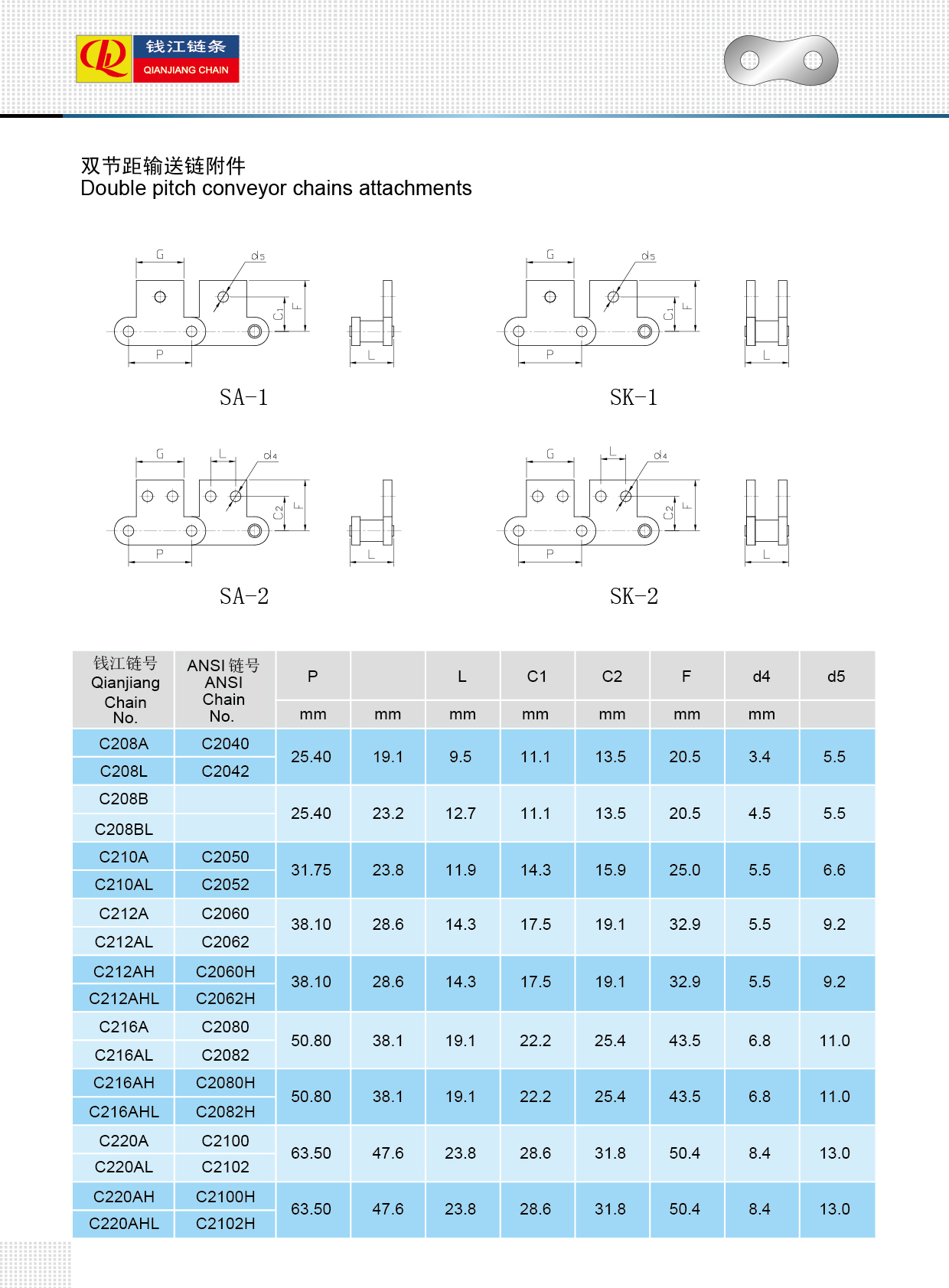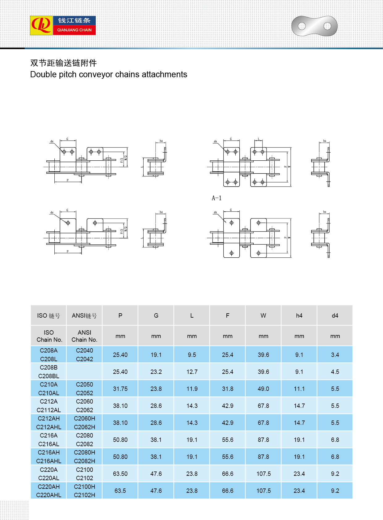 Las cadenas transportadoras de doble paso con accesorios son una solución versátil y eficiente para aplicaciones de transporte y manipulación de materiales. Diseñadas con dimensiones de paso ampliadas, estas cadenas ofrecen un peso más liviano y una alternativa rentable a las cadenas transportadoras estándar, manteniendo al mismo tiempo una alta resistencia y durabilidad. La característica clave de estas cadenas son sus accesorios personalizables, que pueden adaptarse para satisfacer necesidades operativas específicas, ya sea para transportar productos horizontal, vertical o alrededor de curvas. Estos accesorios mantienen los artículos en su lugar de forma segura durante el transporte, lo que garantiza un movimiento suave y confiable incluso en entornos exigentes.