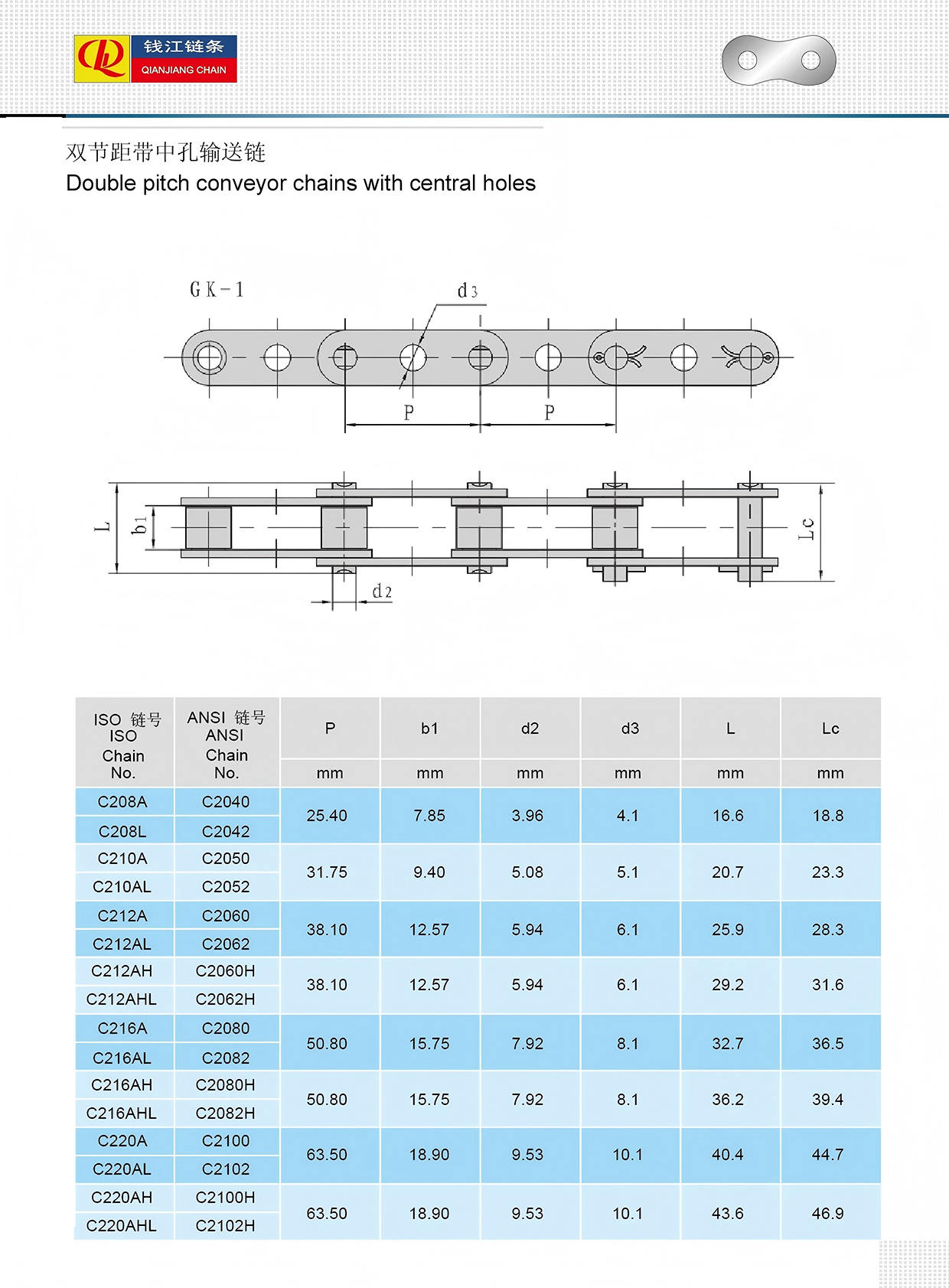 Las cadenas transportadoras de doble paso con orificios centrales son una solución innovadora diseñada para aplicaciones eficientes de manipulación y transporte de materiales. Estas cadenas destacan por su diseño único, que incluye dimensiones de paso ampliadas y orificios centrales estratégicamente ubicados. Este diseño reduce el peso y mantiene una alta resistencia a la tracción, lo que los hace ideales para transportar materiales livianos pero voluminosos a largas distancias sin comprometer el rendimiento. Los orificios centrales también permiten conectar fácilmente accesorios o accesorios personalizados, lo que mejora la versatilidad en diversas industrias.