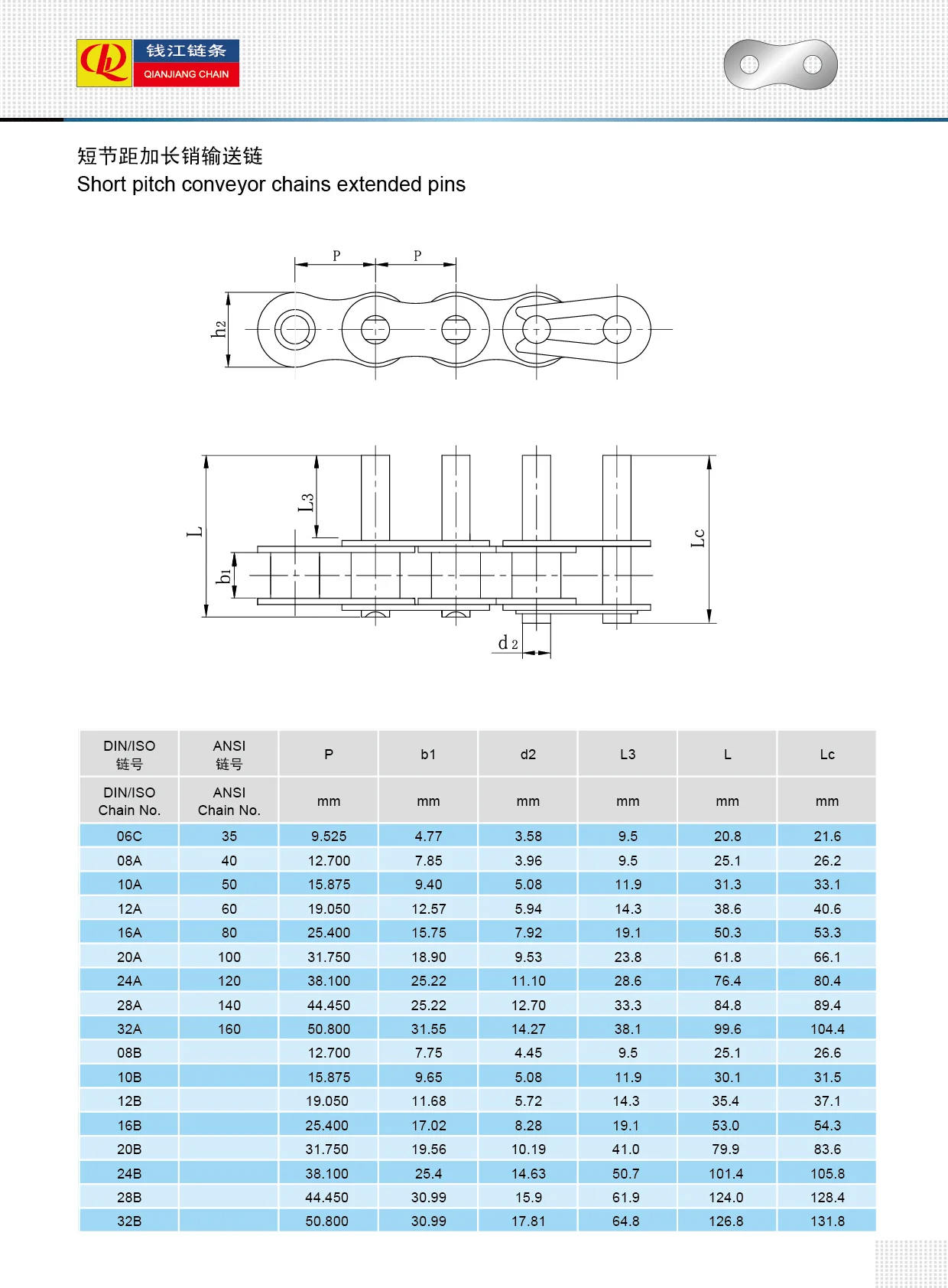 Las cadenas transportadoras de paso corto con pasadores extendidos están especialmente diseñadas para ofrecer un rendimiento preciso y confiable en entornos exigentes de manipulación de materiales. Los pasadores extendidos sobresalen más allá del ancho de la cadena estándar, lo que permite conectar fácilmente accesorios, listones o soportes personalizados, lo que los hace muy versátiles para sistemas de automatización, clasificación y líneas de montaje.
