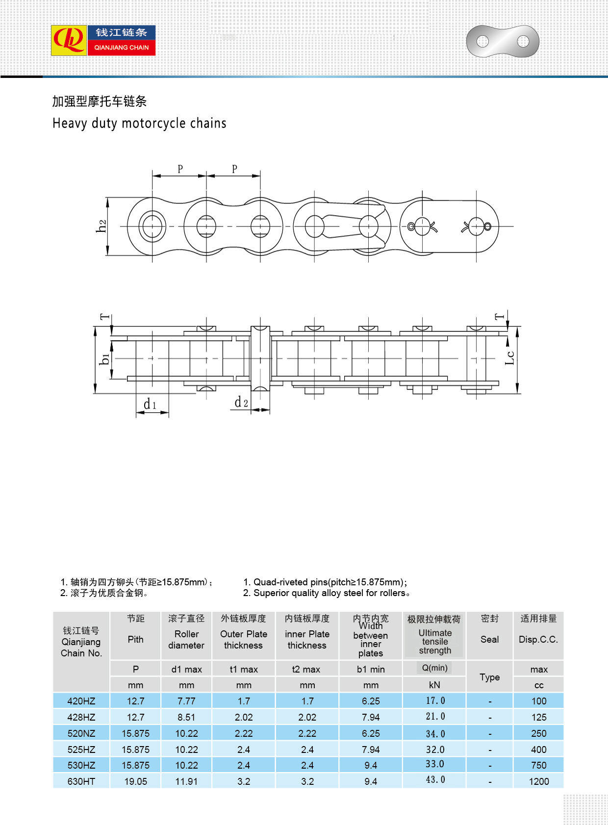 Cadenas de motocicleta resistentes y resistentes de acero de aleación de alta calidad: diseñadas para ofrecer un rendimiento y una confiabilidad inigualables. Fabricadas con acero de aleación de primera calidad, estas cadenas están diseñadas para resistir las condiciones, ofreciendo resistencia, resistencia al desgaste y durabilidad duradera.