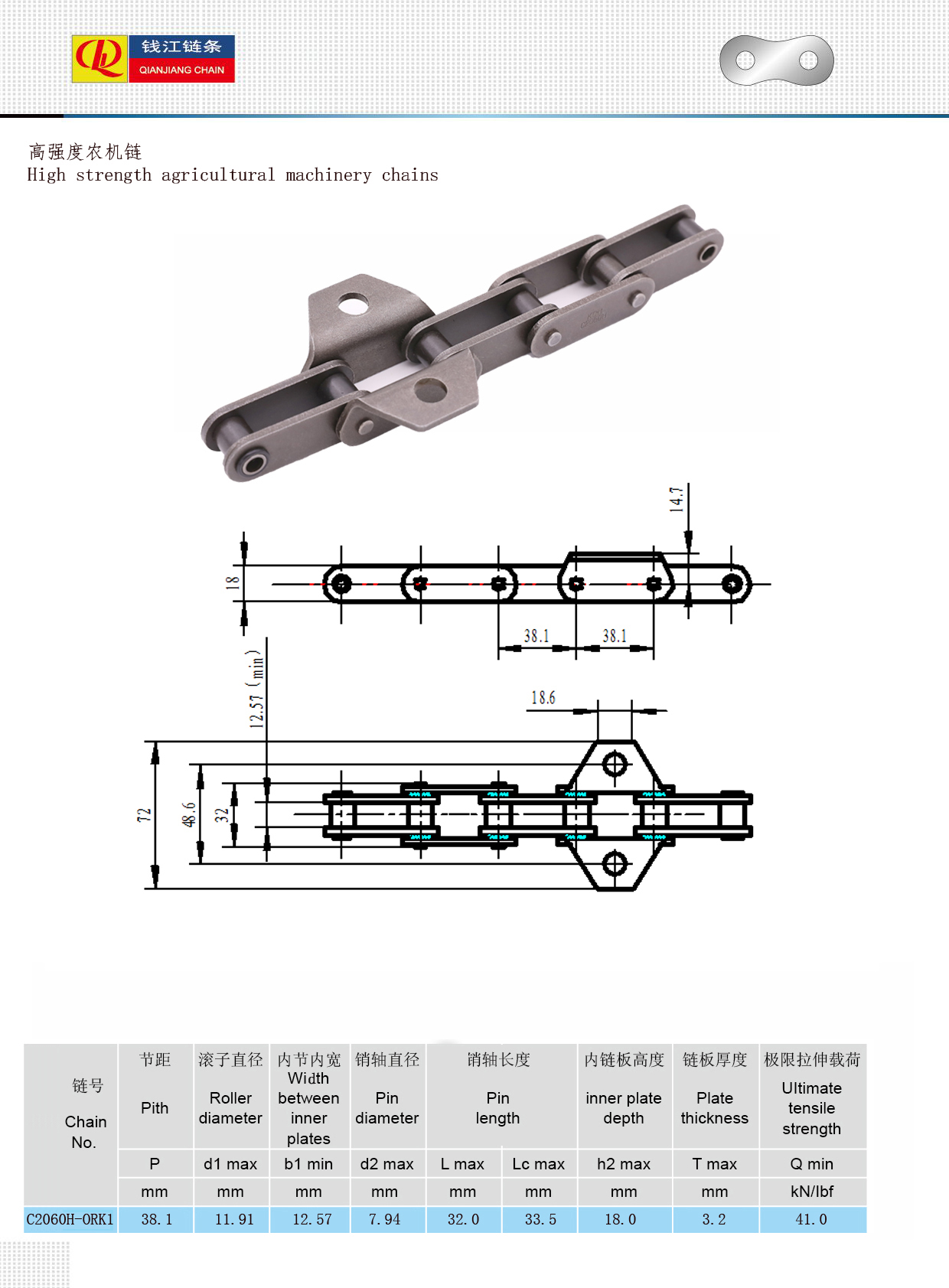 Las cadenas de maquinaria agrícola de alta resistencia tienen resistencia al desgaste, resistencia y vida útil, y son adecuadas para diversas condiciones de trabajo complejas. Se utilizan materiales de aleación de acero de alta calidad y la resistencia a la tracción y la vida útil de la cadena se mejoran mediante procesos de tratamiento térmico (como cementación, revenido y enfriamiento). La superficie de contacto de la cadena está especialmente endurecida, con una superficie lisa y buena resistencia al desgaste, adecuada para trabajos de alta frecuencia. La tecnología de procesamiento de precisión garantiza que los eslabones de la cadena coincidan estrechamente, funcionen sin problemas y reduzcan el ruido y la vibración. Se puede personalizar una variedad de pasos, resistencias y formas (como cadenas de rodillos, cadenas de accesorios, cadenas de placa doblada, etc.) de acuerdo con las necesidades de soporte de diferentes maquinarias y equipos agrícolas. Se utiliza en el mecanismo de transmisión de transporte, corte y trilla de cosechadoras de trigo, arroz, maíz, etc. El accionamiento del disco de siembra y del eje de fertilizante requiere que la cadena funcione de manera precisa y duradera. Aplicado a cintas transportadoras agrícolas, elevadores de materiales, etc., para realizar tareas de transporte de alta frecuencia.