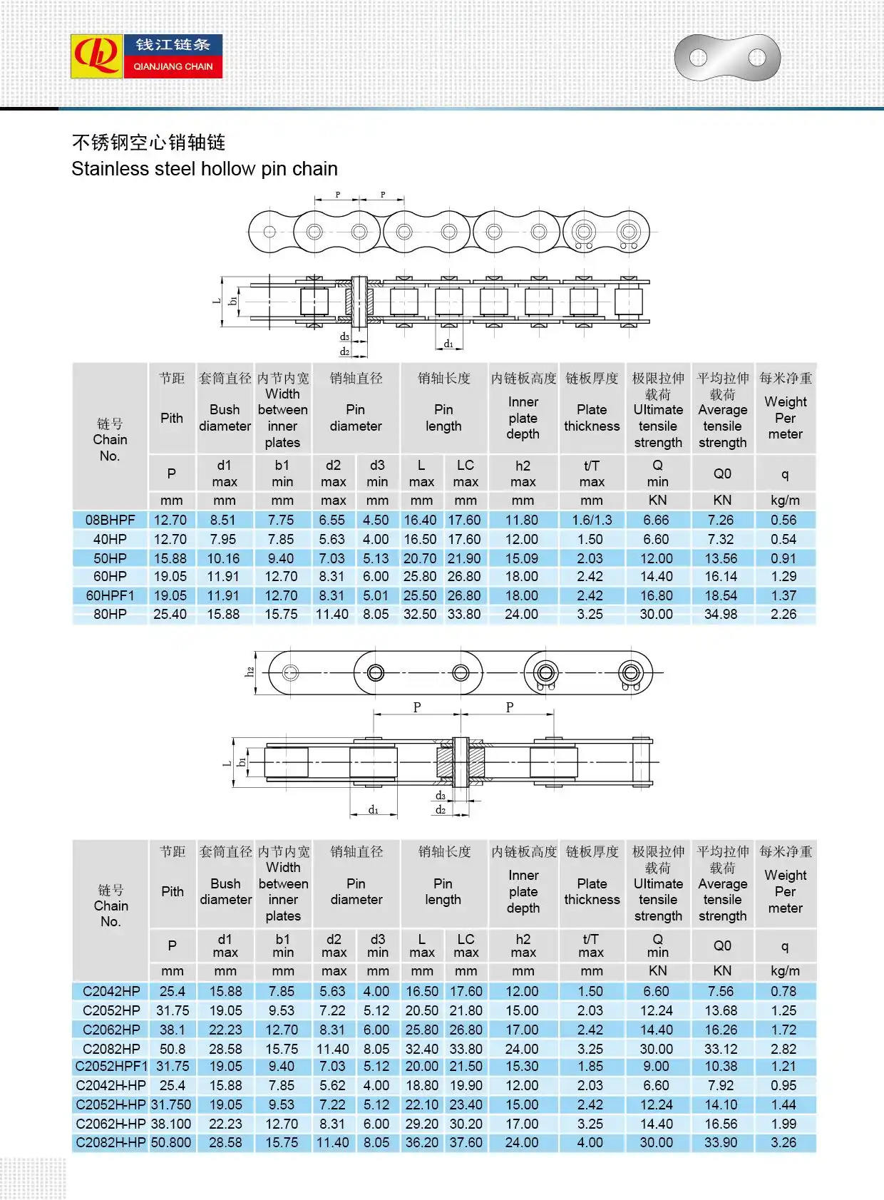 Desde una perspectiva de aplicación, las cadenas de pasador hueco de acero inoxidable destacan en diversas industrias, como procesamiento de alimentos, embalaje, fabricación de automóviles y más. Sirven para transportar productos delicados, acomodar accesorios para tareas específicas o funcionar de manera confiable en condiciones de alto estrés. ¡Elija cadenas de pasador hueco de acero inoxidable para satisfacer sus necesidades industriales de una manera más inteligente y confiable!